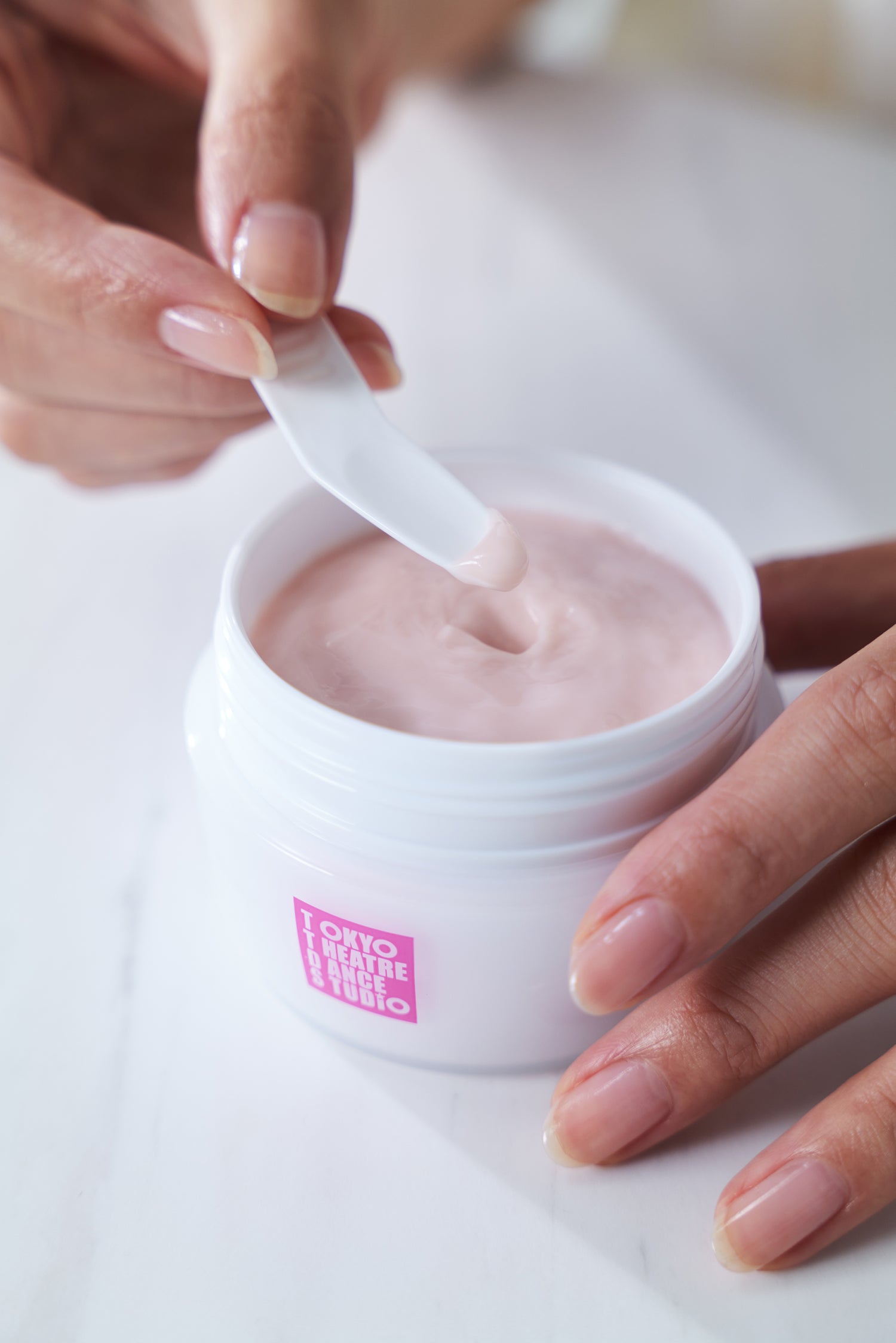 【 Step1 】 化粧水で肌を整えた後、適量(付属のスパチュラですくい取れる量の2分の1)を取ります。